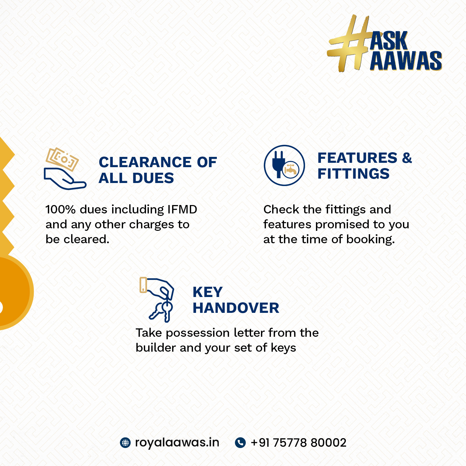 Settle all outstanding payments, including IFMD and any other charges, before possession.